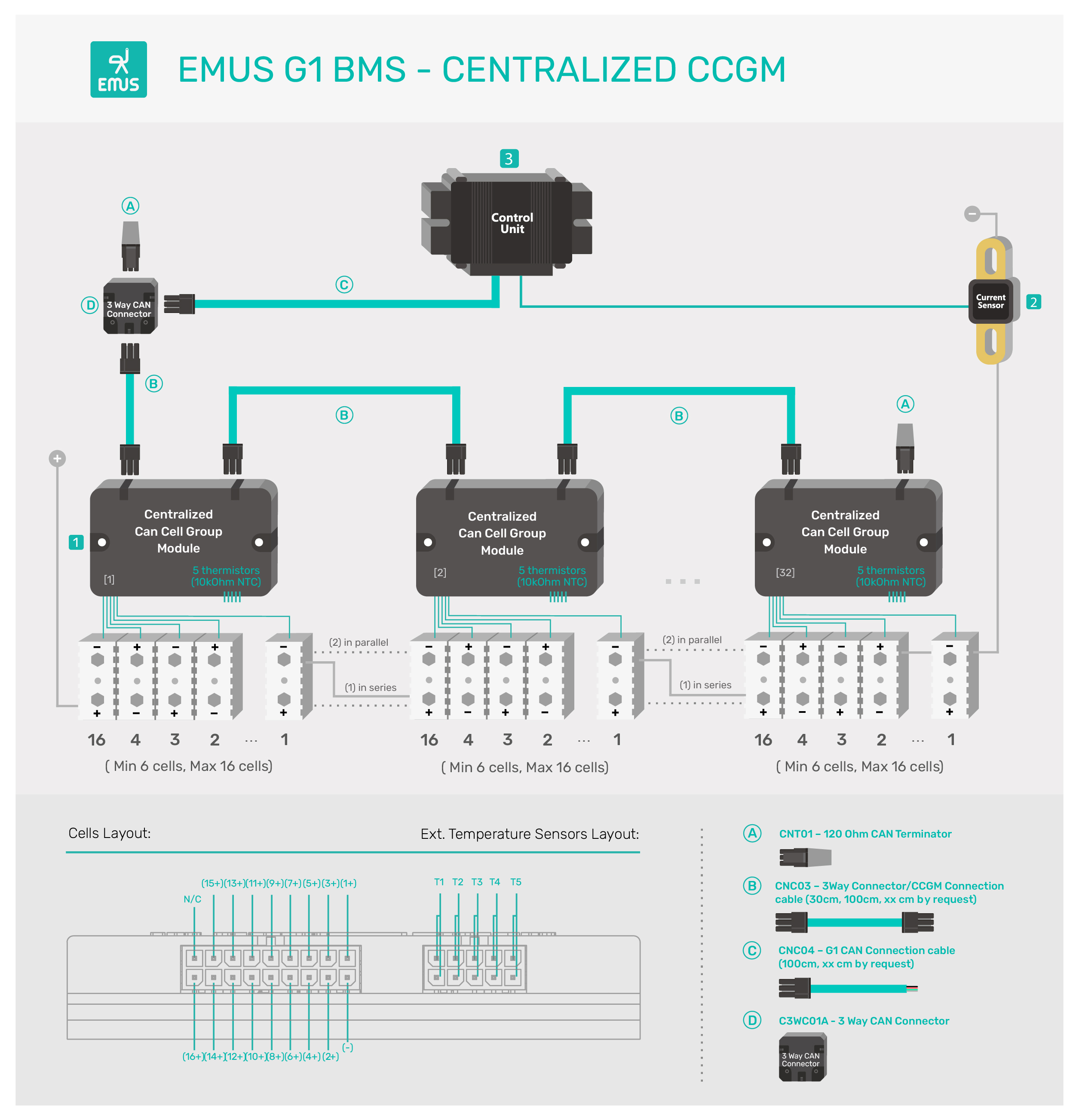 CNC03 | CNC03 CAN cable for CCGM unit or 3 Way connector | CNC03-30, cable length 30cm CNC03-100, cable length 100cm CNC03-150, cable length 150cm CNC03-XX, customized cable length by request |