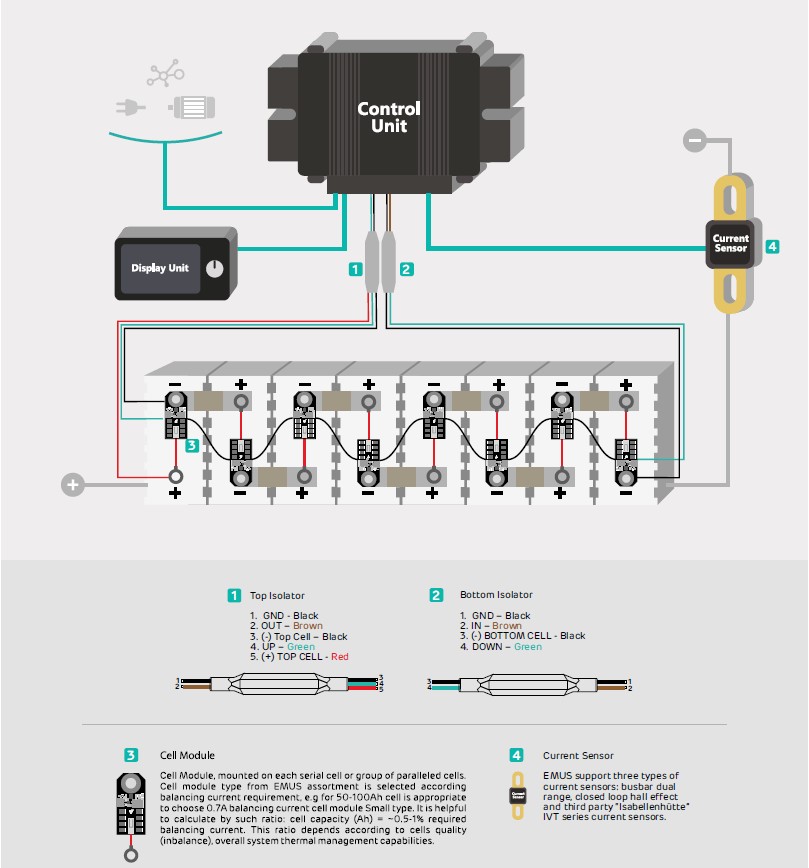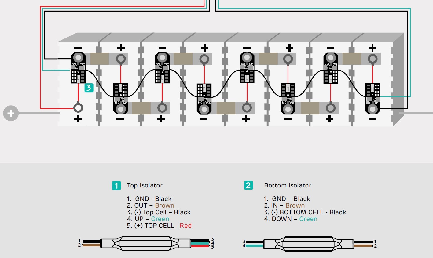 Emus BMS Top/Bot Isolators are cell communication adapters that provide optical isolation in application where the main controller communicates directly to EMUS BMS Cell Modules. The Bot isolator connects between the main controller and the first cell of series-connected battery pack, while the Top Isolator provides isolating barrier between the last cell of series-connected battery pick and the main controller.